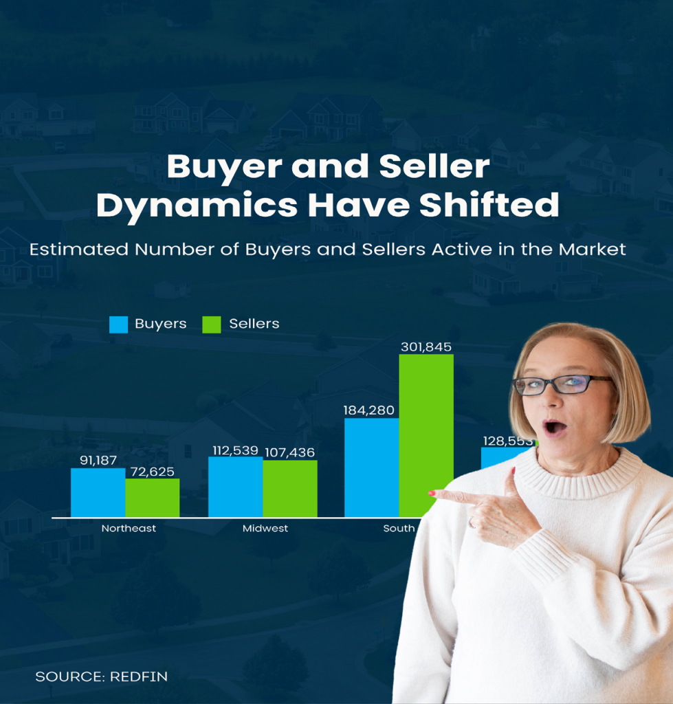 📍 The South and West, (where we are!), are leaning toward buyer’s markets. There’s more inventory and fewer active buyers, giving buyers the upper hand and creating opportunities to negotiate.