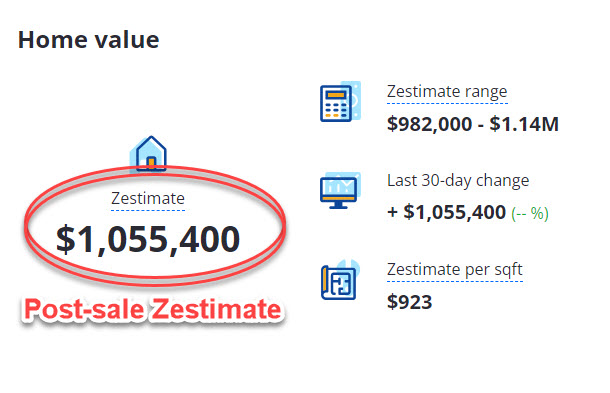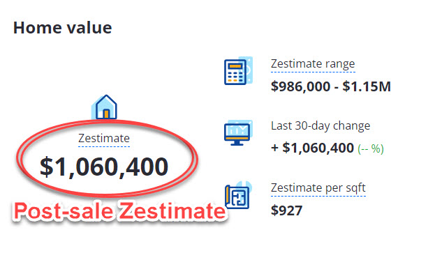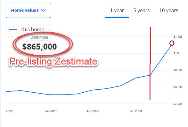 “Before & After” Zestimates for my recently sold listing at 39 Winterhaven are below.